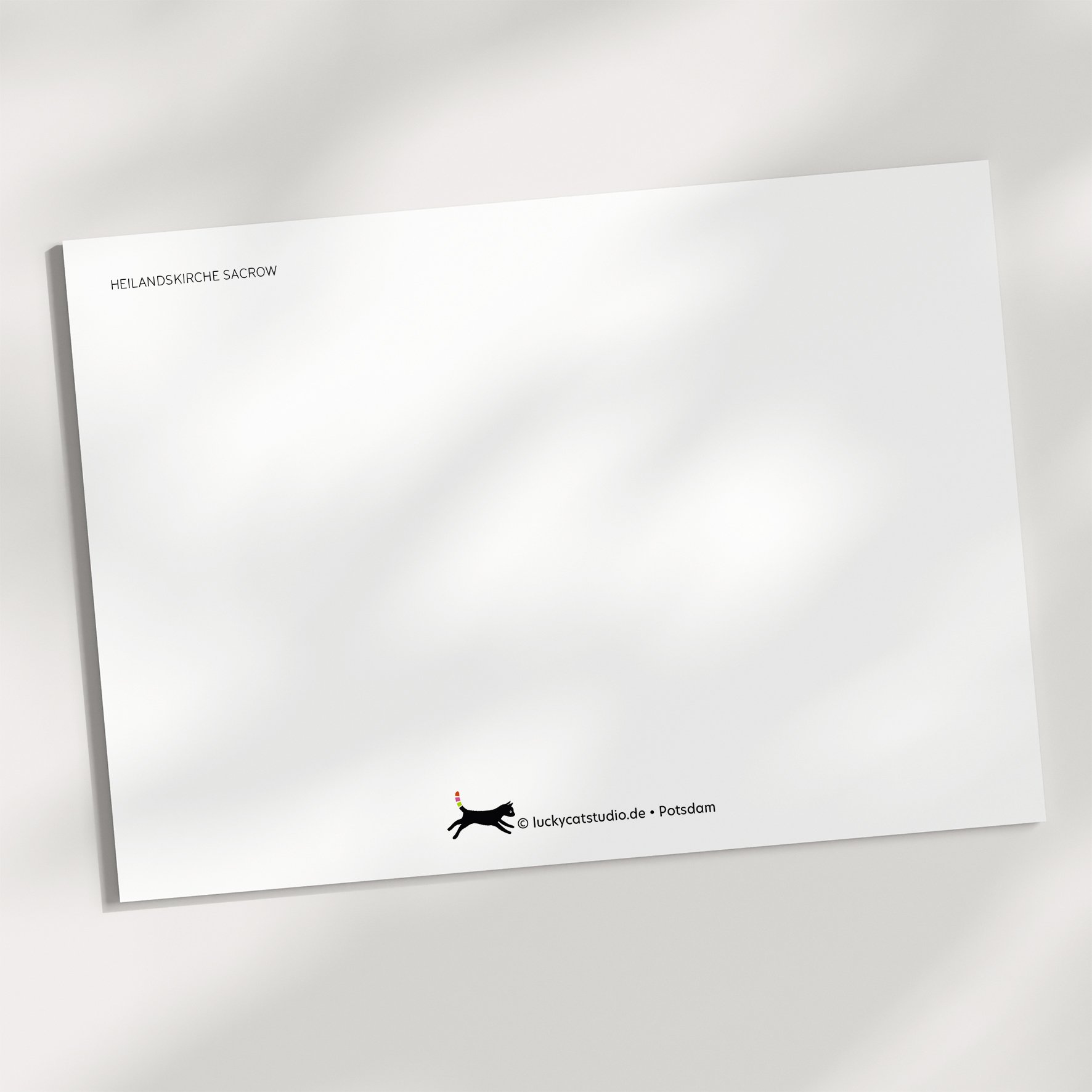 Gedruckt auf stabilem 300g-Karton (A6), mit glatter Vorderseite und beschreibbarer Rückseite.