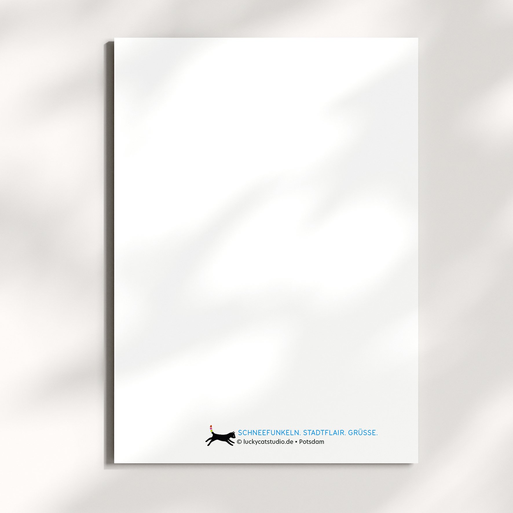 Die Winterstadt ist auf hochwertigem 300g Chromokarton im DIN-A6-Format gedruckt und auf der Vorderseite mit einem glänzenden Schutzlack veredelt – so funkelt sie noch ein bisschen mehr. ❄️